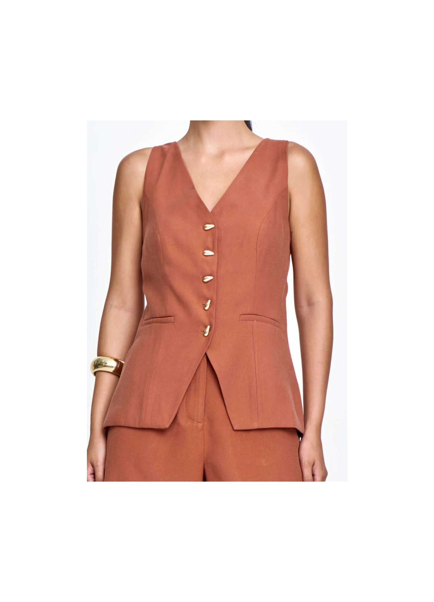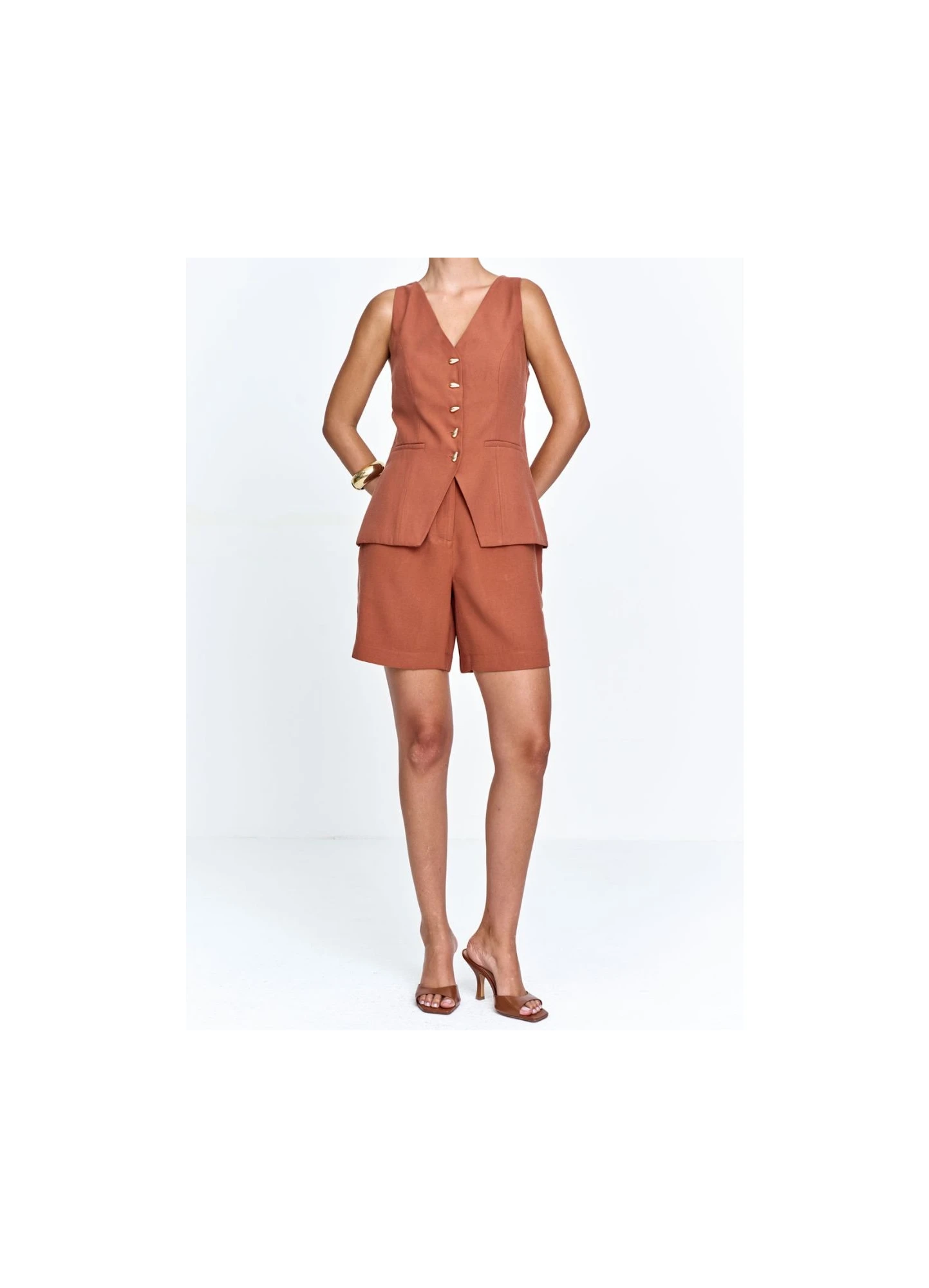SHORTS ALFAIATARIA, BOLSOS FUNICIONAIS, CINTURA ALTA, FECHAMENTO COM BOTÕES DUPLOS, MODELAGEM RETA...