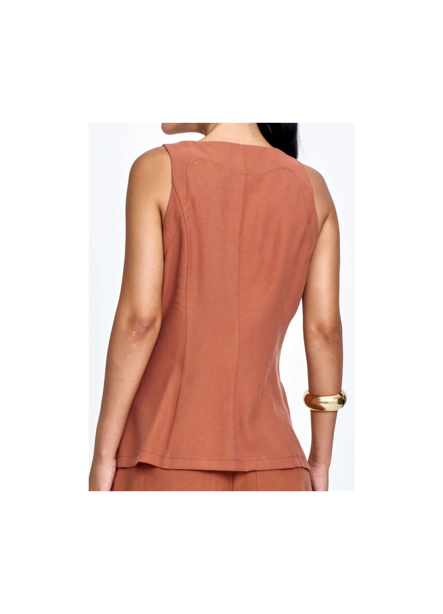REGATA VISCOLINHO, FRANZIDO FRONTAL QUE VALORIZA O BUSTO, LAÇÕS AJUSTÁVEIS NAS ALÇAS, MODELAGEM SOLT..