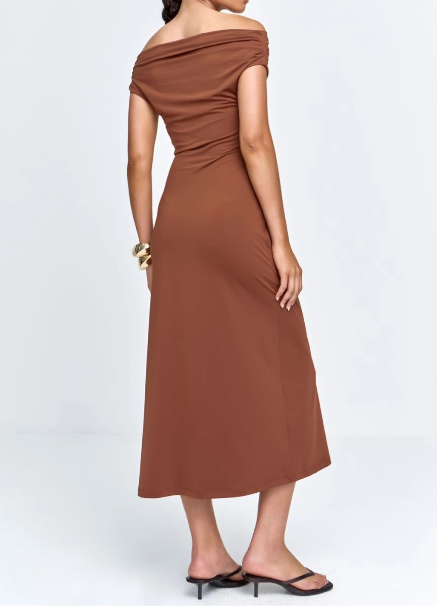 VESTIDO MALHA OMBRO A OMBRO - Chocolate